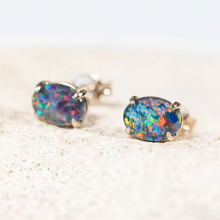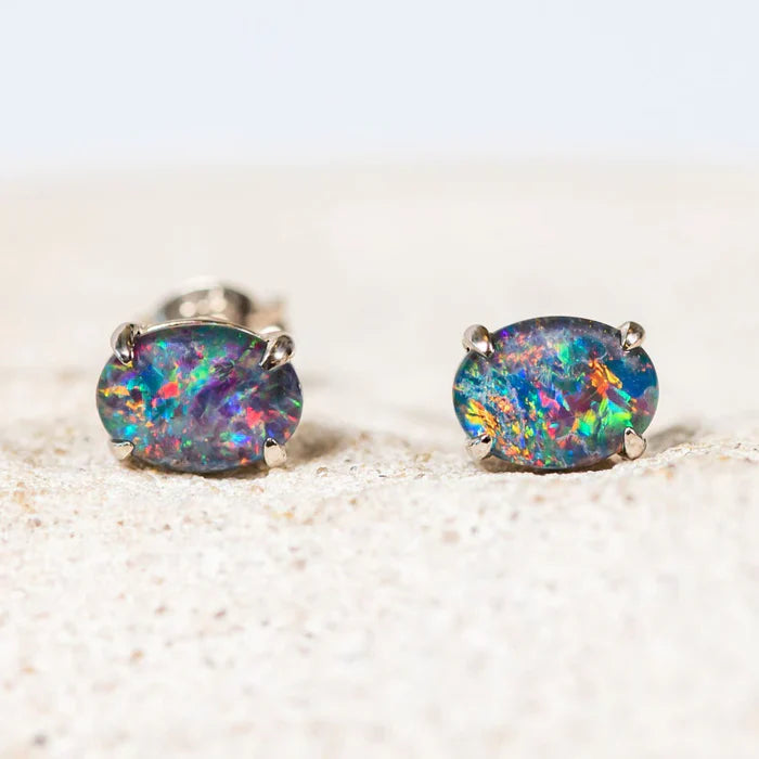 タイムレスなスターリングシルバーのオパールスタッドピアス「Aurelia Petite」 。どんな装いにもエレガントさを添えるデザインです。まばゆいばかりのオーバルシェイプのオーストラリア産トリプレットオパールをあしらったこのピアスは、マルチカラーやブルー&グリーンの輝きを放ち、カジュアルにもフォーマルにも幅広く活躍します。完璧なクローセッティングで、控えめな魅力を放ちます。