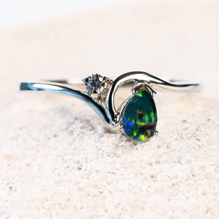 Aven – スターリングシルバー ティアドロップ マルチカラー トリプレットオパールリング