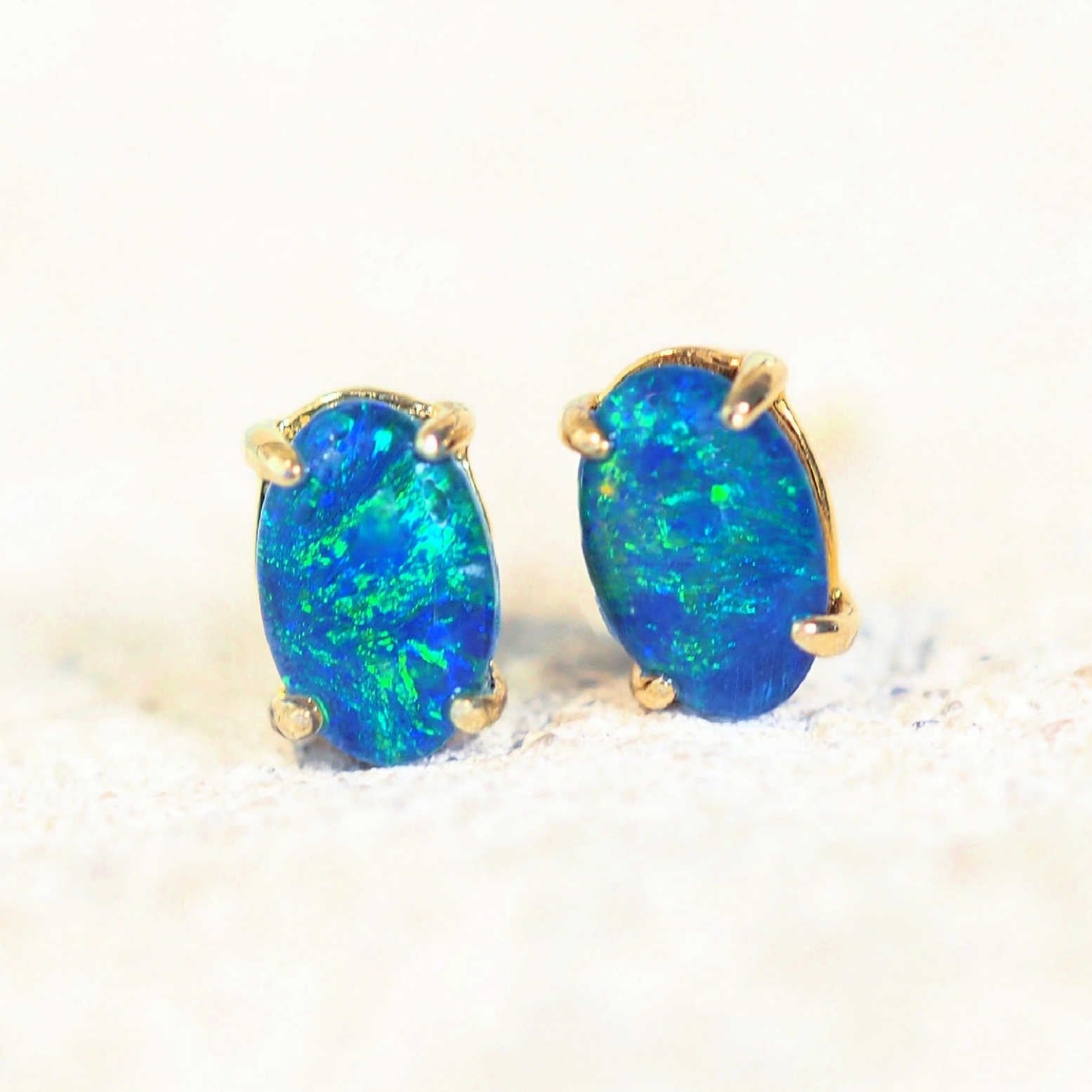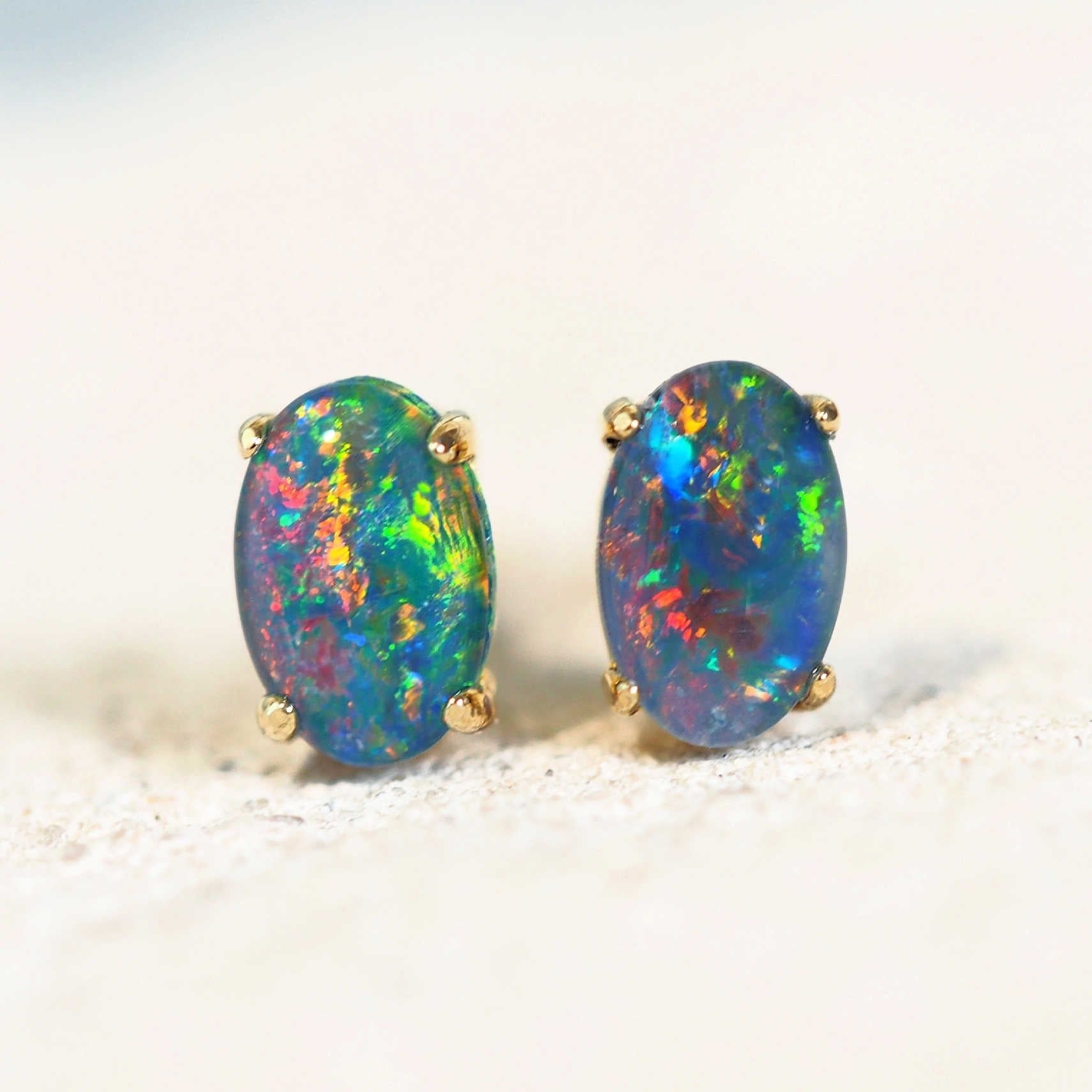 Say hello to Gia Petite, your new go-to for timeless opal elegance. These petite gold-plated silver stud earrings feature stunning oval-shaped Australian triplet opals, claw-set for a secure and polished look. Perfect for adding a touch of sparkle to any outfit, the Gia Petite earrings are all about bringing out your inner glow with their vibrant multi-colored or blue-and-green hues.