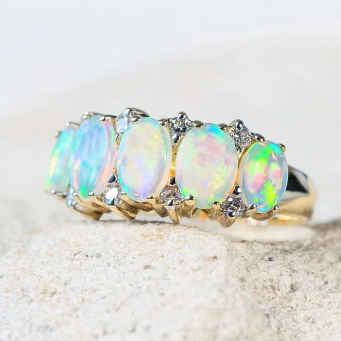このクリスタルオパールリングには、倫理的に調達されたオーストラリア産の天然オパールが使用されています。ご購入時に、署名入りの真正証明書をお付けいたします。あらゆる瞬間にちょっとした贅沢を添える、個性的で高品質なジュエリーを愛する方にぴったりです。
