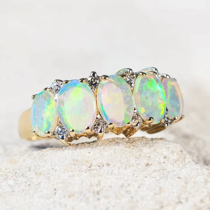 エララ – 14カラットゴールドクリスタルオパール&ダイヤモンドリング