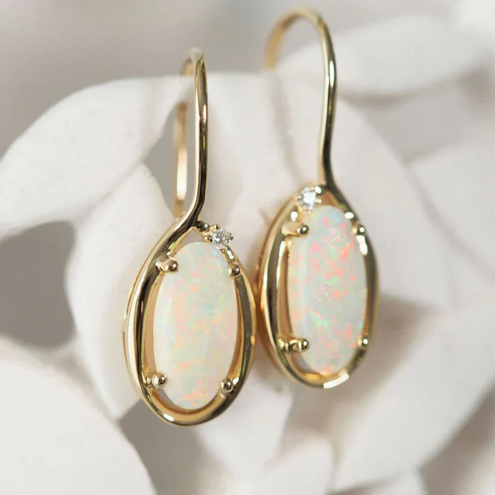 ヴェラ – 14カラットゴールドホワイトオパールドロップイヤリング(ダイヤモンド付き)