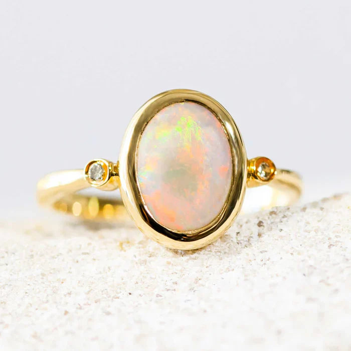 ヴェーダ – 18カラットゴールド マルチカラー ホワイトオパール&ダイヤモンドリング