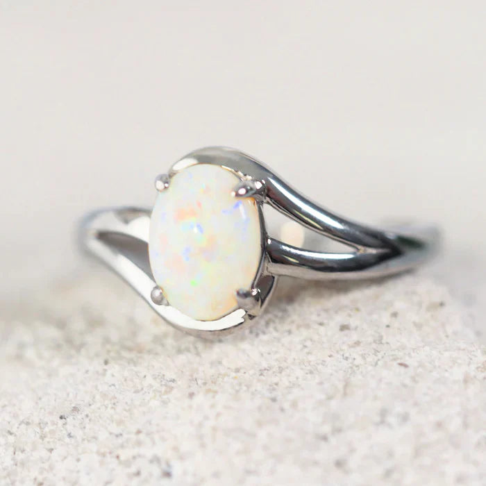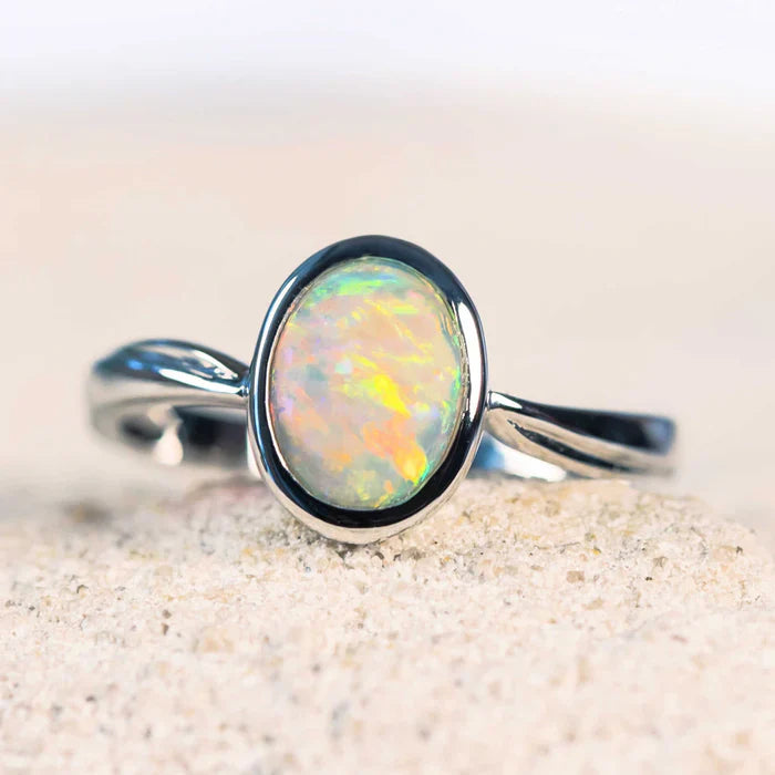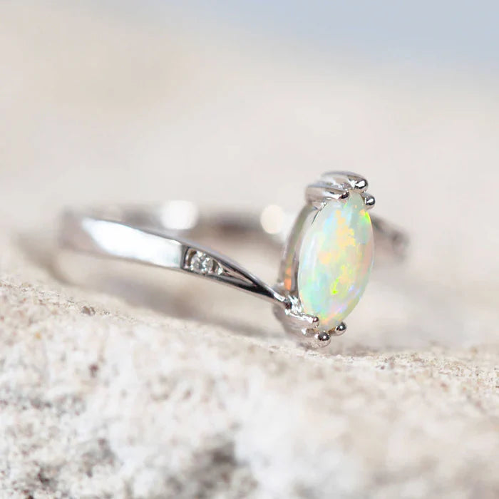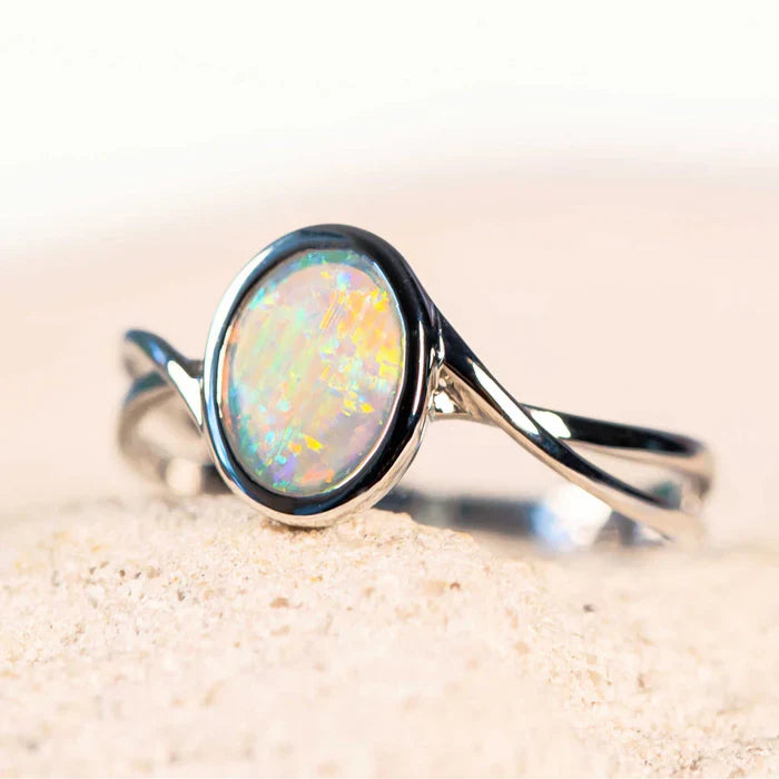 アリエル – 14カラットホワイトゴールド マルチカラーオパールリング