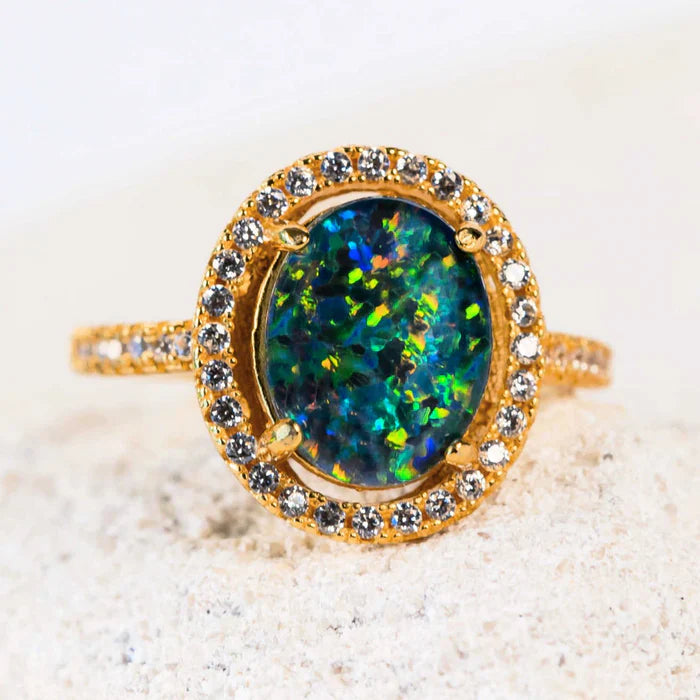 オーレリア – 金メッキスターリングシルバーオーバルトリプレットオパールリング