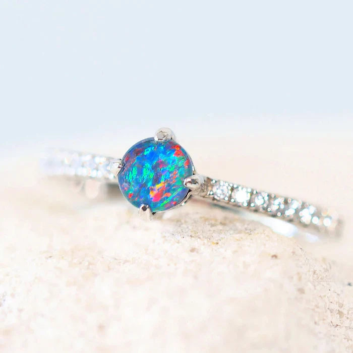 アリエラ – スターリングシルバー マルチカラー トリプレットオパールリング クリスタル付き
