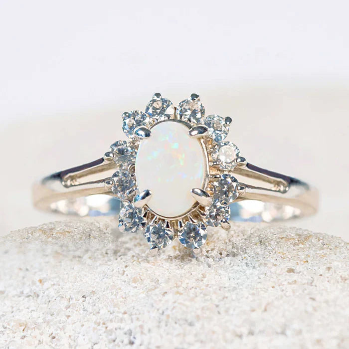アリエラ – キュービックジルコニア付きスターリングシルバーマルチカラーホワイトオパールリング