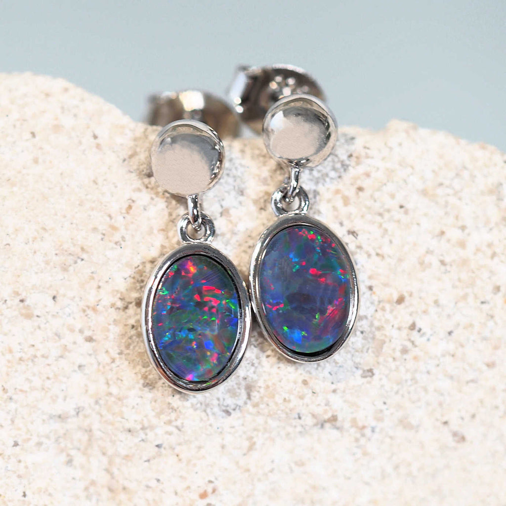 ハンナ – スターリングシルバー トリプレットオパール ドロップイヤリング