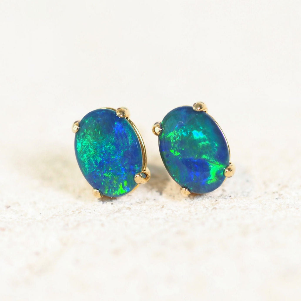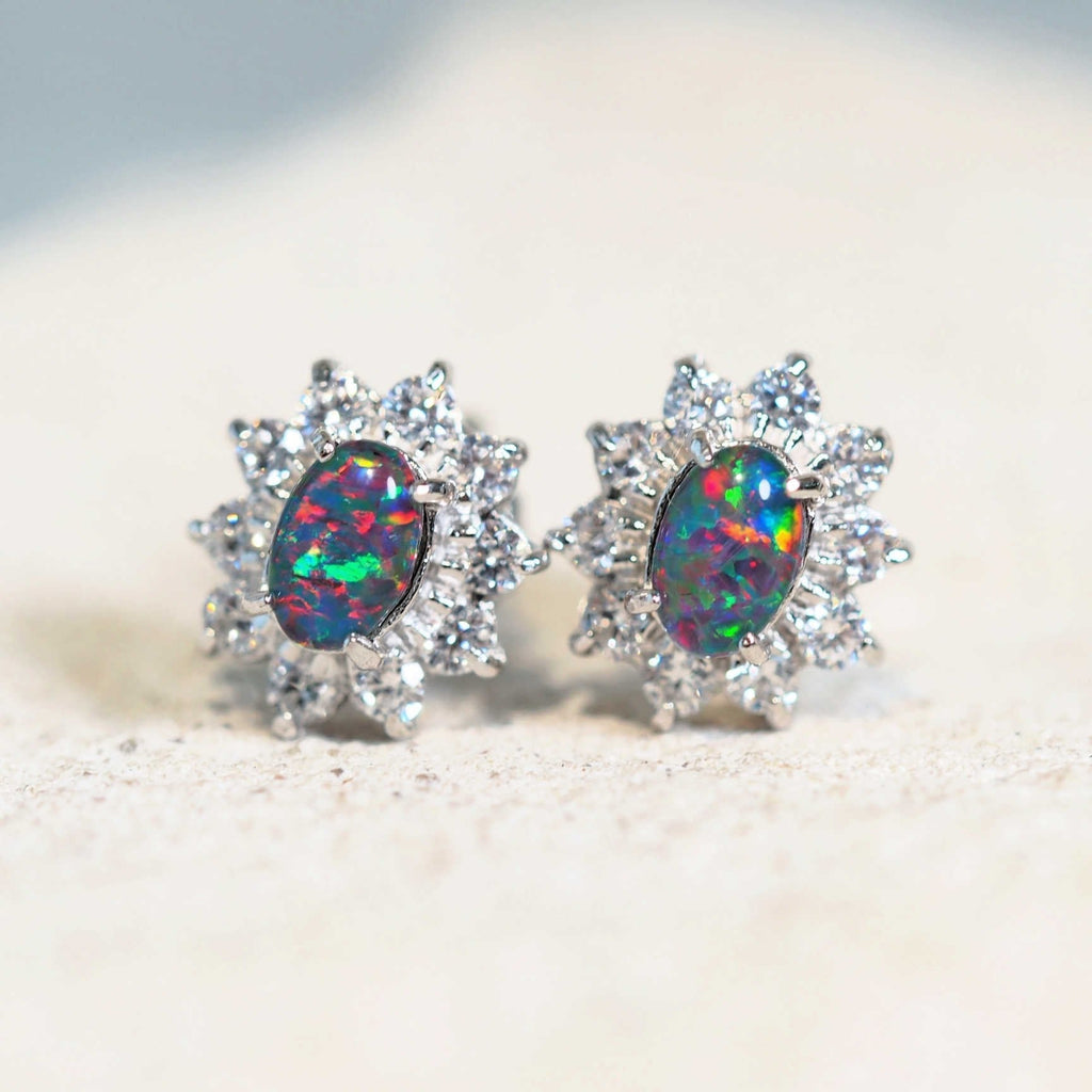 ジゼル – スターリングシルバー トリプレットオパール スタッドピアス