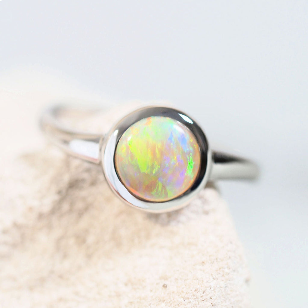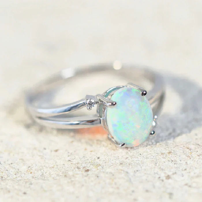 セナ – 14カラットホワイトゴールドクリスタルオパールリング