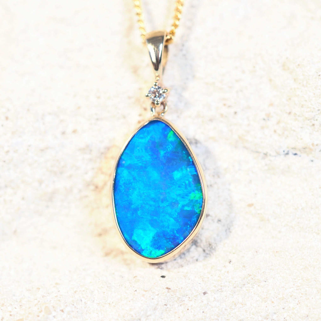 オリオン – ゴールドメッキシルバーブルー&グリーントリプレットオパールペンダント