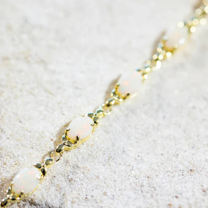 セラフィナ – ゴールドメッキ スターリングシルバー ホワイトオパール フラワーブレスレット