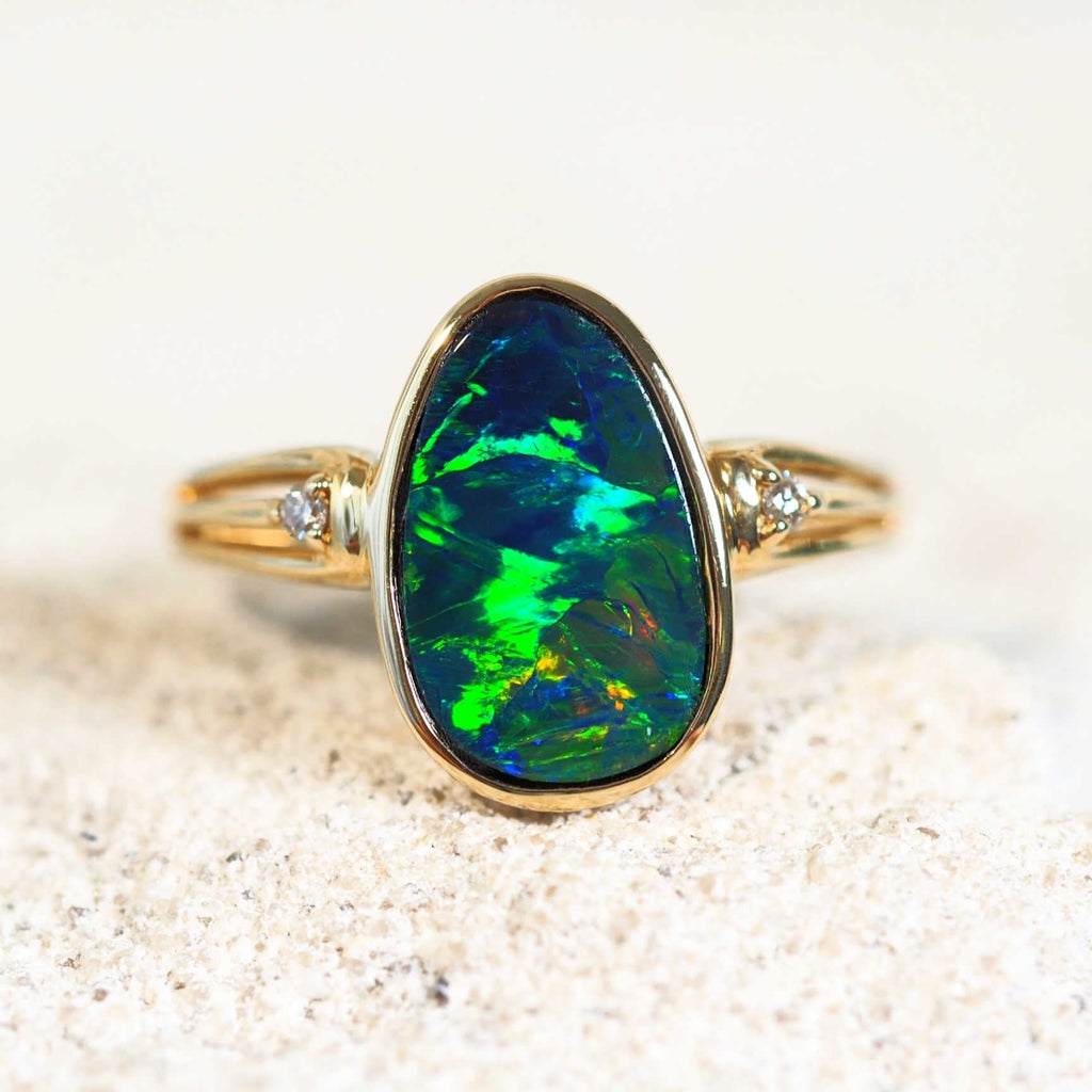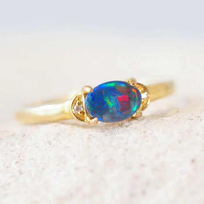Zara – 14カラットゴールド マルチカラーオパールリング