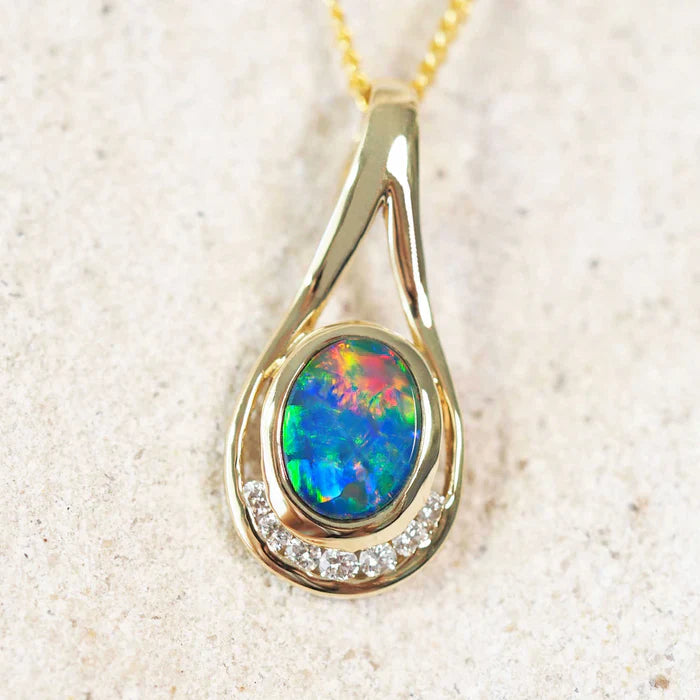 このダブレットオパールペンダントには、倫理的に調達されたオーストラリア産天然オパールが使用されています。ご購入いただいたすべての商品に、真正証明書が付属いたします。