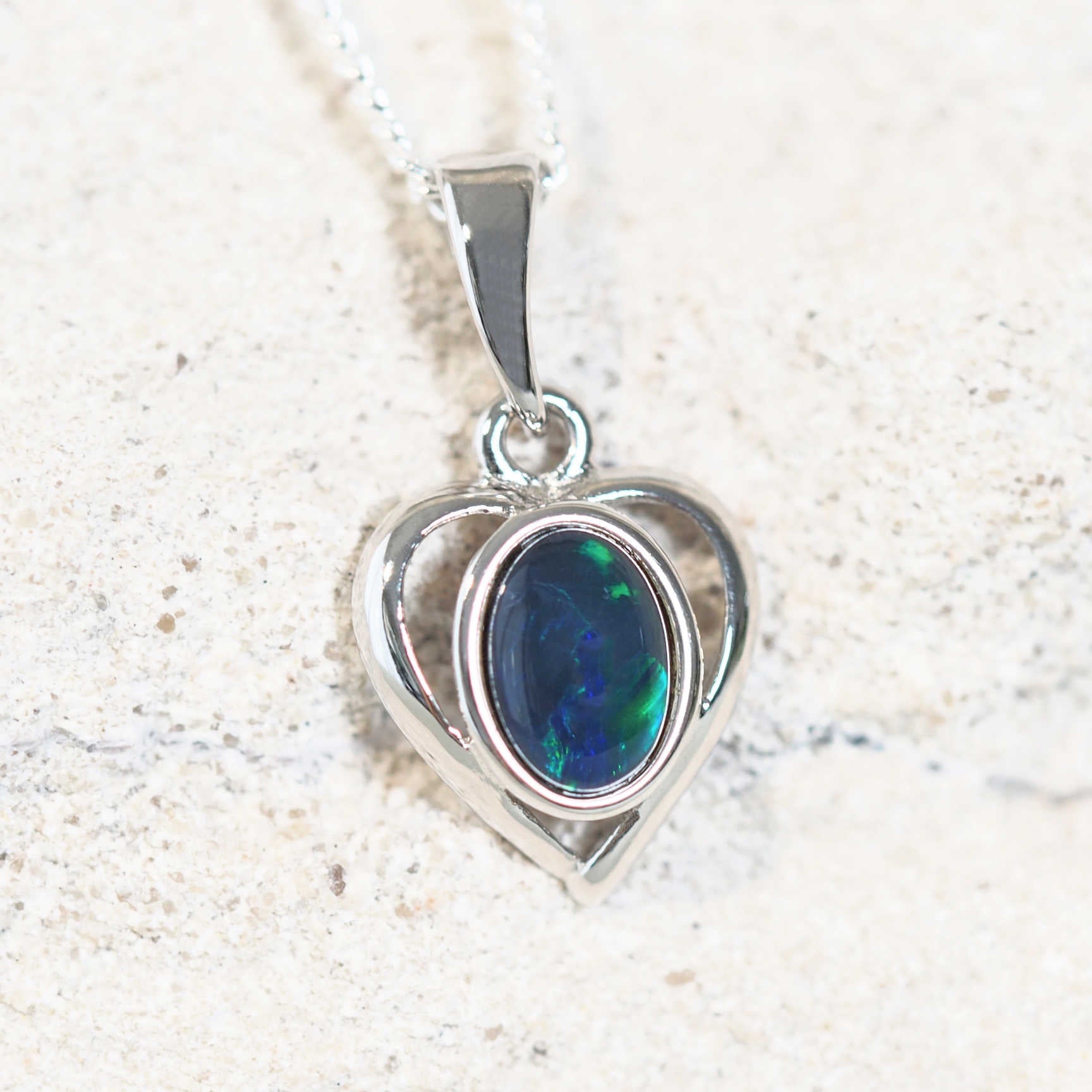 ヴェラブルー – スターリングシルバー オパール ハートペンダント