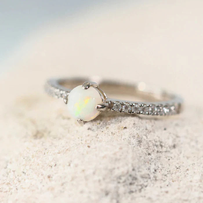 アミラ – スターリングシルバー ホワイトオパールリング