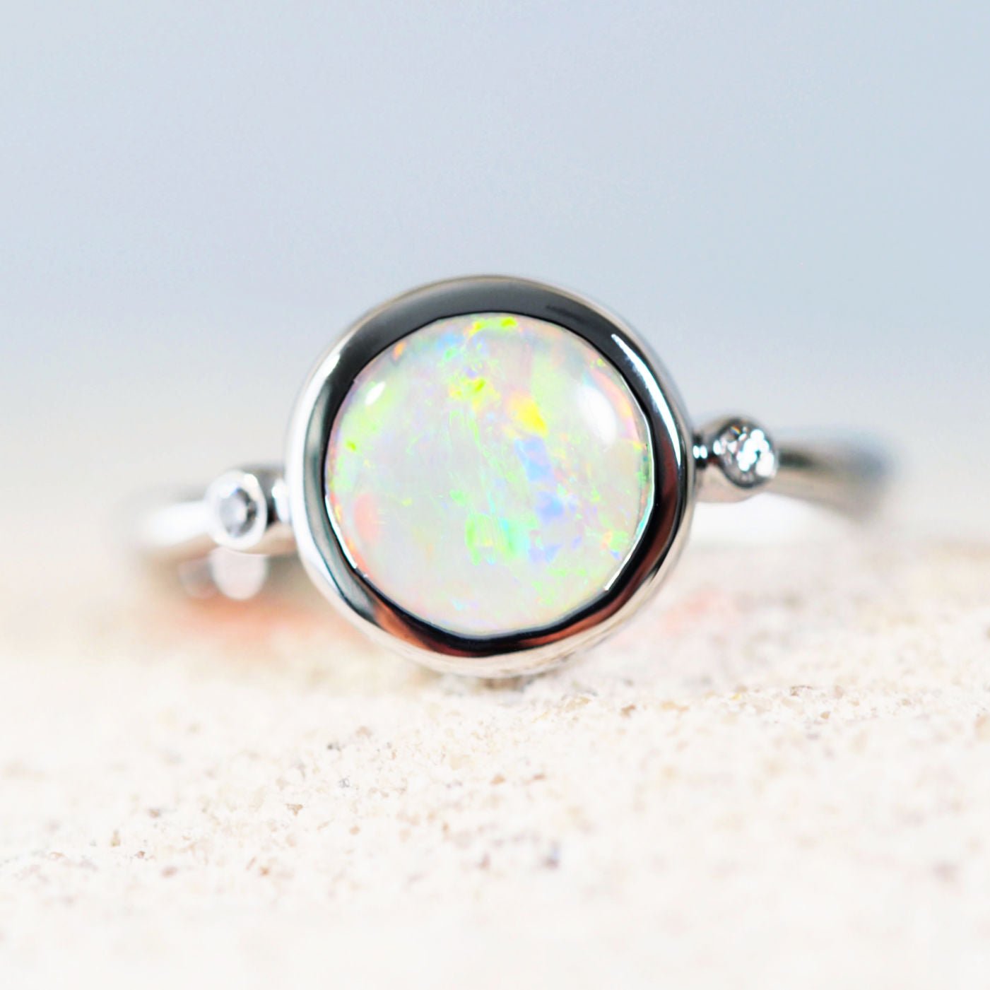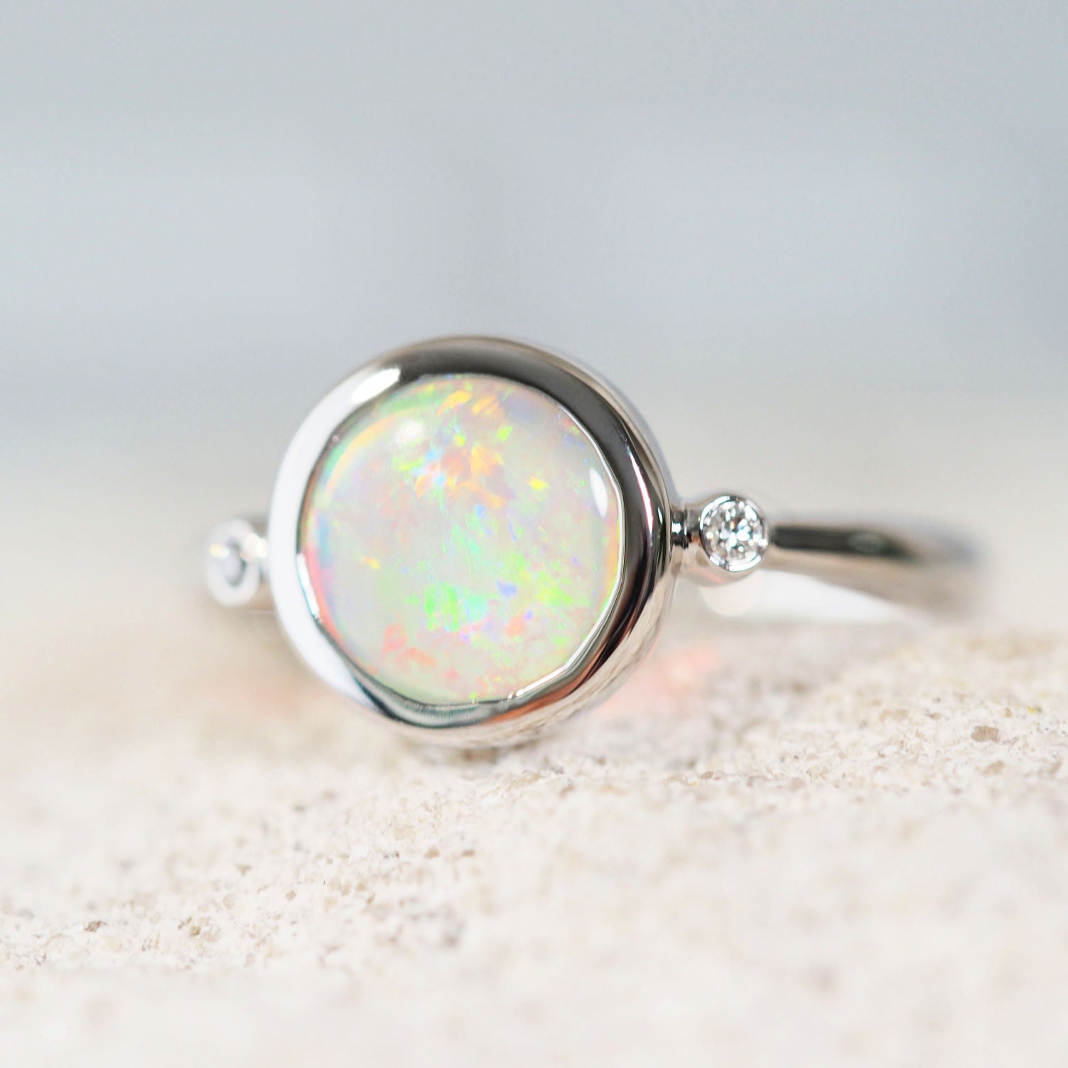 ダナ – 14カラットホワイトゴールド マルチカラーオパールリング
