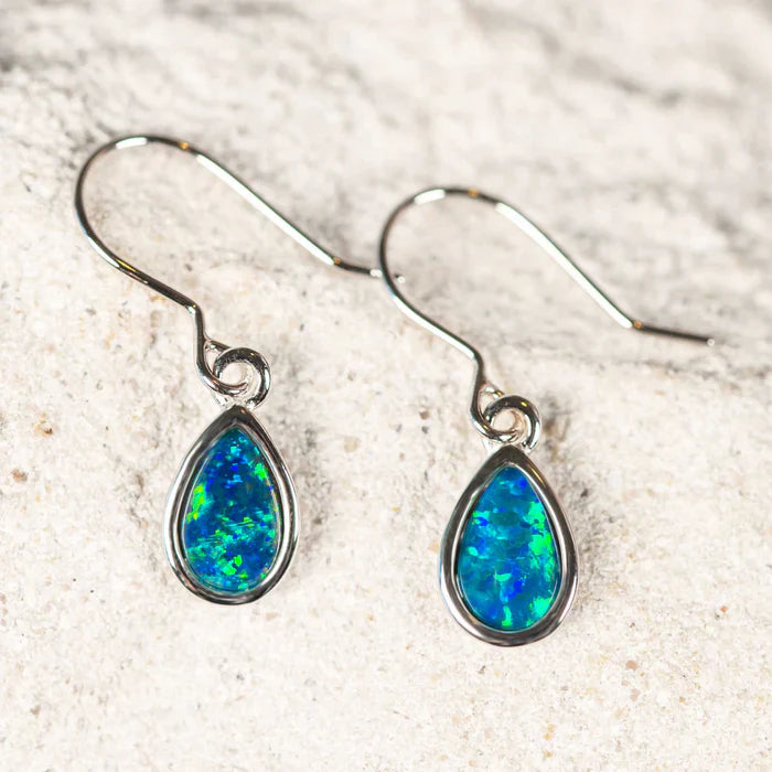 エララ – スターリングシルバー ティアドロップ トリプレット オパール イヤリング
