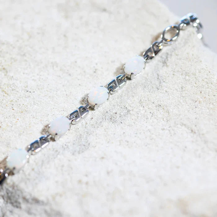 エララ – スターリングシルバー ホワイトオパール ダブルリンクブレスレット