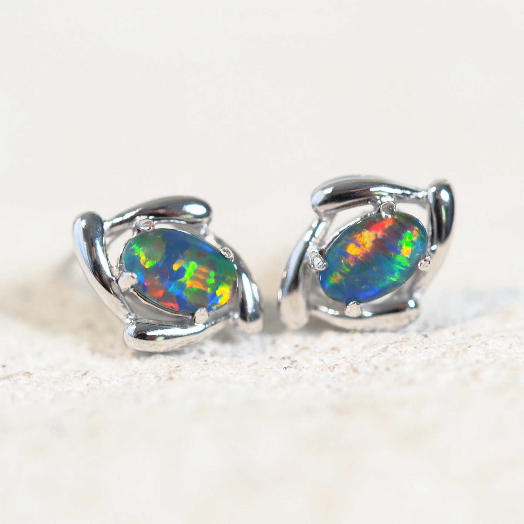 フェイ – スターリングシルバー トリプレットオパール スタッドピアス