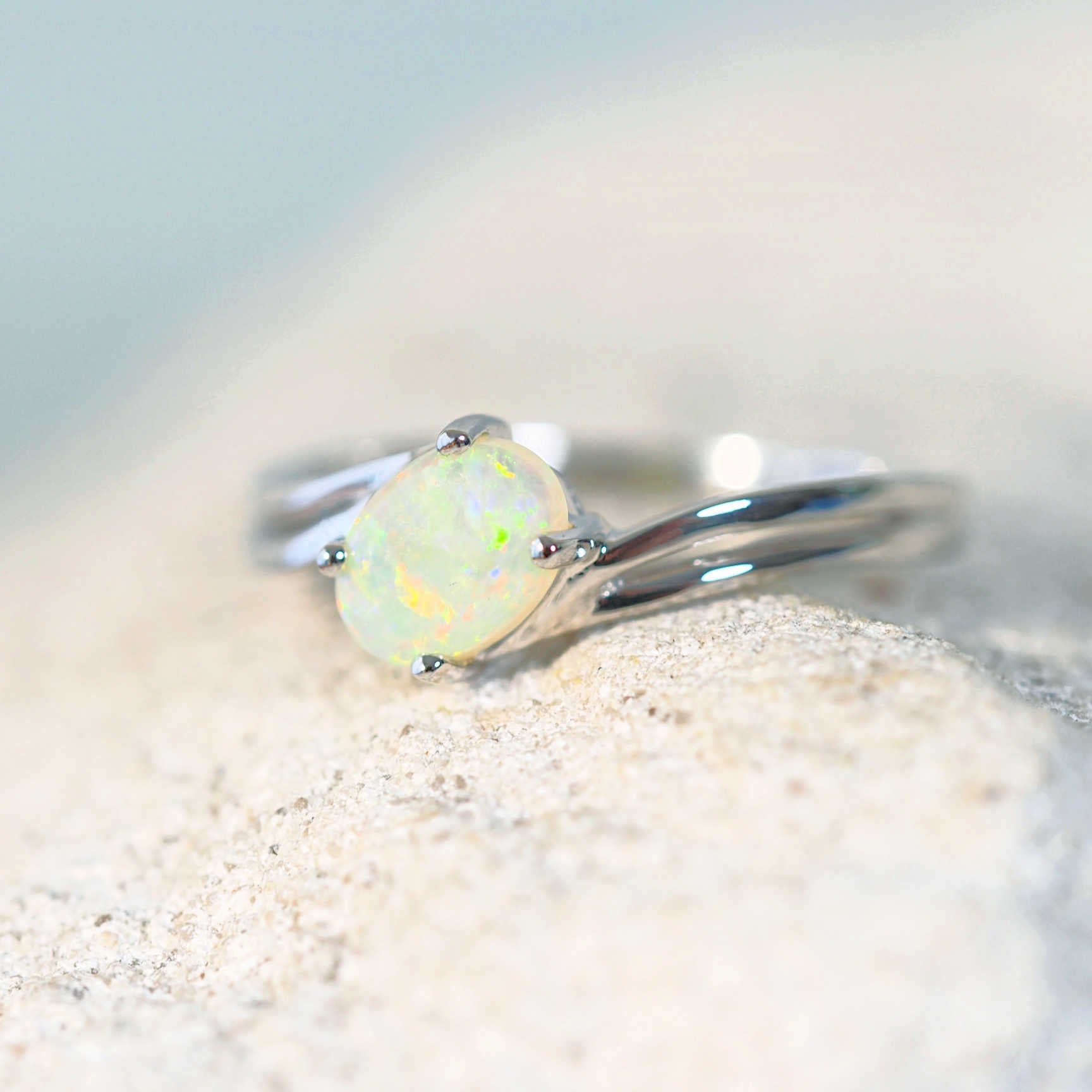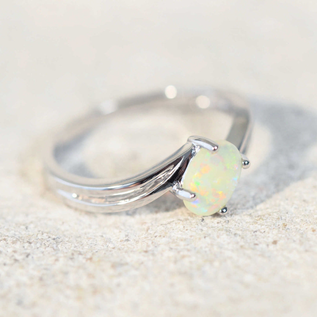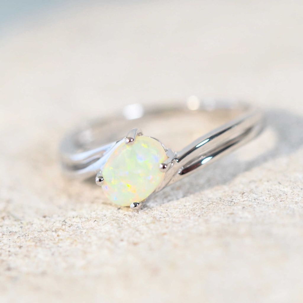 リアナ – 14カラットホワイトゴールドクリスタルオパールリング