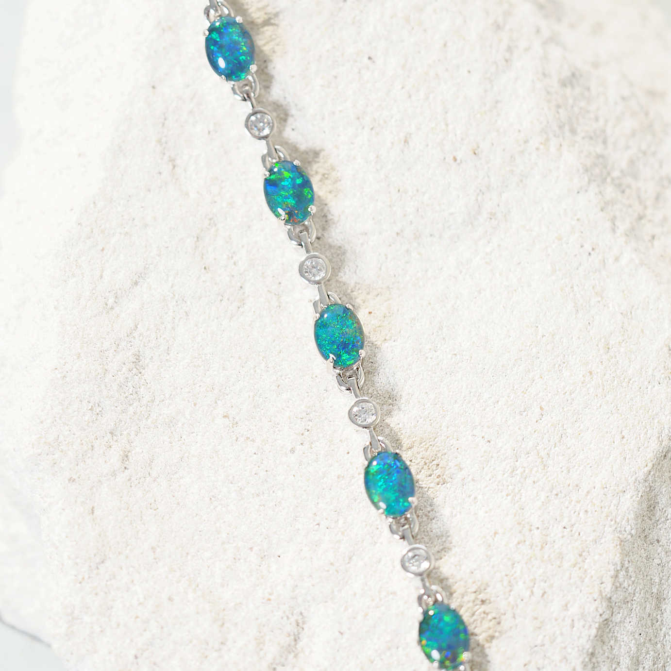 Nova – スターリングシルバー ブルー&グリーン トリプレットオパールブレスレット