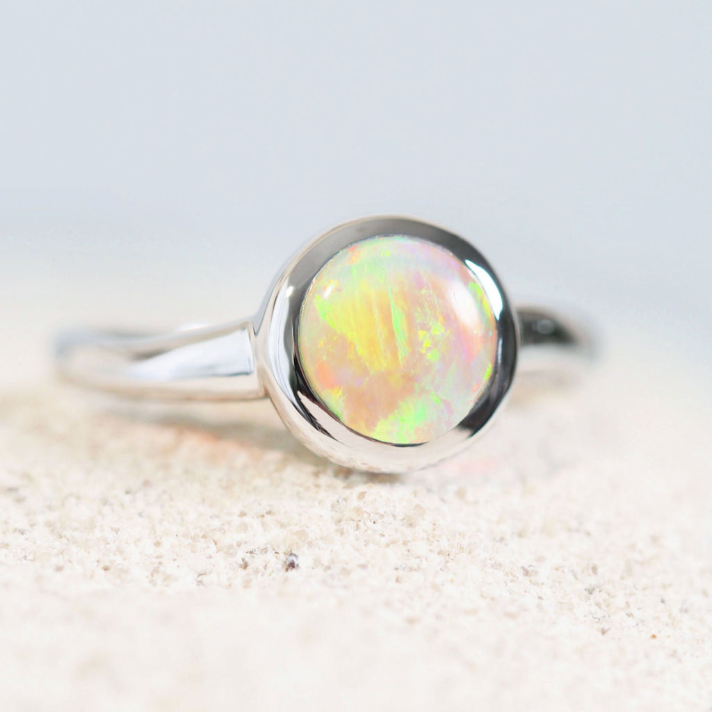 セナ – 14カラットホワイトゴールドクリスタルオパールリング