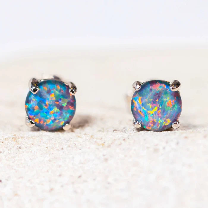 ヴェーダ – スターリングシルバー ミニトリプレットオパールスタッドピアス