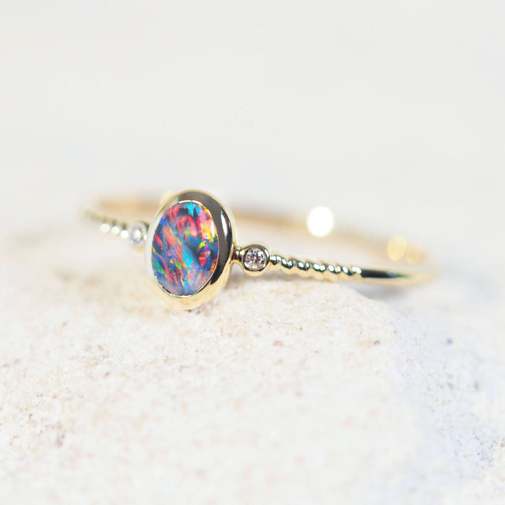 Viora の各リングには、倫理的に調達された天然のオーストラリア産オパールが使用されており、署名入りの真正証明書が付属しています。